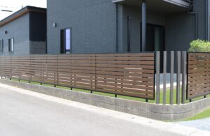 雨風に強いアルミ製のフェンス。上下2段重ねタイプなので、希望の高さに調整可能。今回は高さ80cmタイプ+80cmタイプの160cmに設定しました。